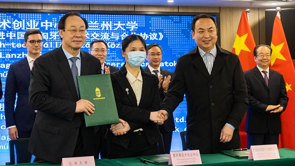 顺利获得院中匈中心前期的筹备和对接,大会期间,在匈牙利驻华大使白思谛、匈牙利驻重庆总领事馆总领事葛凯达、匈牙利驻华大使馆特命全权公使戴彼得、匈牙利外经贸部科技参赞鲍洛安,重庆市政府副市长蔡允革、重庆市科技局党委书记局长许洪斌、四川省科技厅党委书记副厅长陈学华和凯发k8官网书记何平的见证下,重庆市科学技术局与匈牙利创新与技术部签署了《中国(重庆)—匈牙利科技创新战略谅解备忘录》,院高创中心(中匈中心)分别与兰州大学,贵州省技术转移中心签订《协同推进中国-匈牙利技术研讨与合作》协议,与匈牙利匈中双语学校和重庆两江新区星湖学校签署《协同推进中国—匈牙利科技教育研讨与合作协议》。同时,还集中组织了5项成渝地区和匈牙利的创新合作项目签约和中匈果酒白兰地(帕林卡)研究室揭牌,以“线上+线下”的方式展示推介了27项成渝地区和匈牙利的科技成果项目,11项推介成果项目进行了现场对接,其中4项初步达成合作意向。