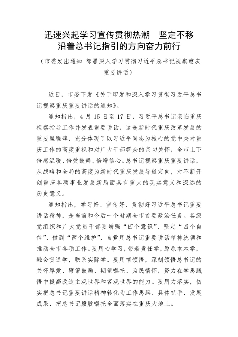 迅速兴起学习宣传贯彻热潮 坚定不移沿着总书记指引的方向奋力前行