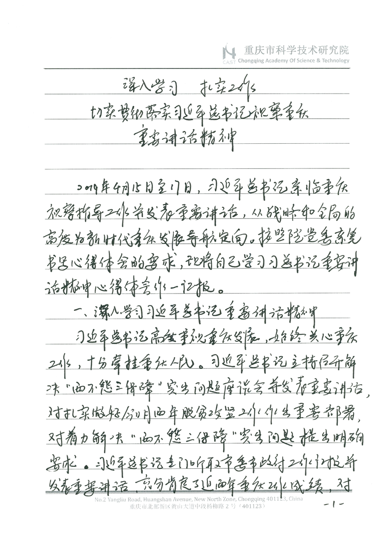 深入学习 扎实工作 切实贯彻落实习近平总书记视察重庆重要讲话精神 - 曾学东